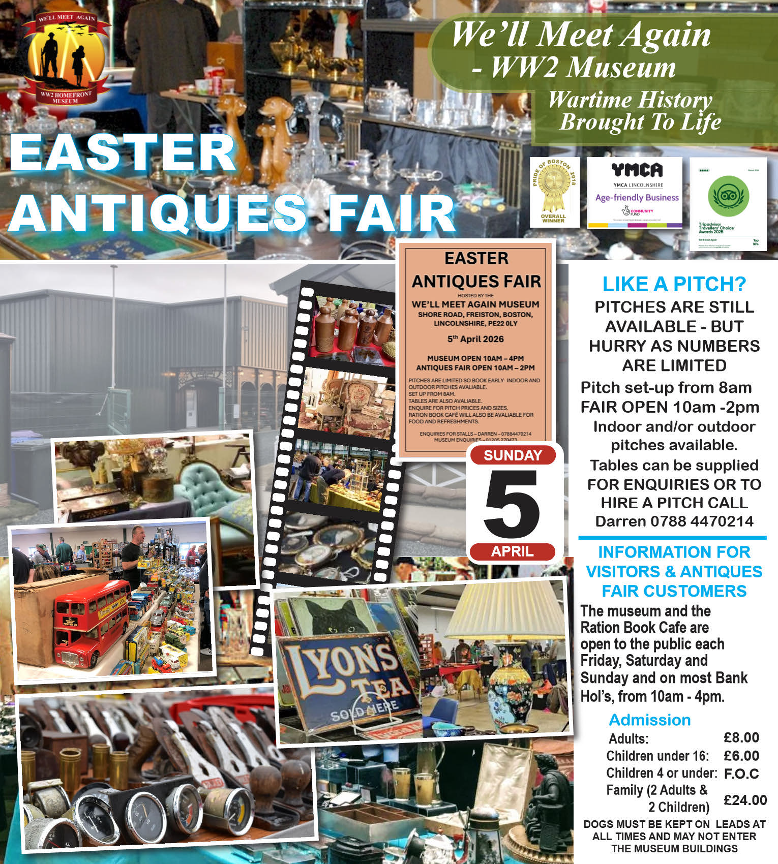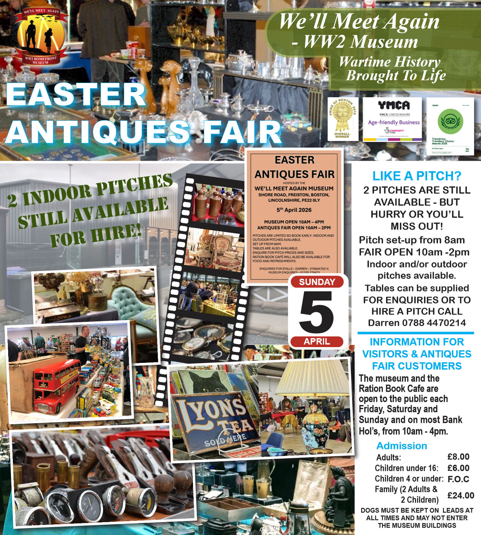 Visit the museum over Easter's long weekend. See classic cars on display and an Easter Bonnet competition on Sunday, visit our new Easter Antiques Fair too! All exhibition rooms, and the Ration Book Cafe open each day.